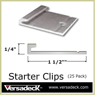 T-Clips mount the plank firmly in place yet allow them to expand and contract with the temperature changes preventing the fasteners from shearing off. The T-Clips are easily installed from the top side of the deck yet stay hidden between the plank gaps resulting in a clean surface look. Use the Starter Clips to install the first plank side that's next to a building wall. The first plank slides into the Starter Clips followed by a T-Clip for fastening the other side of the plank. The Starter Clips are used for the first plank and the T-Clips are used throughout the rest of the deck.